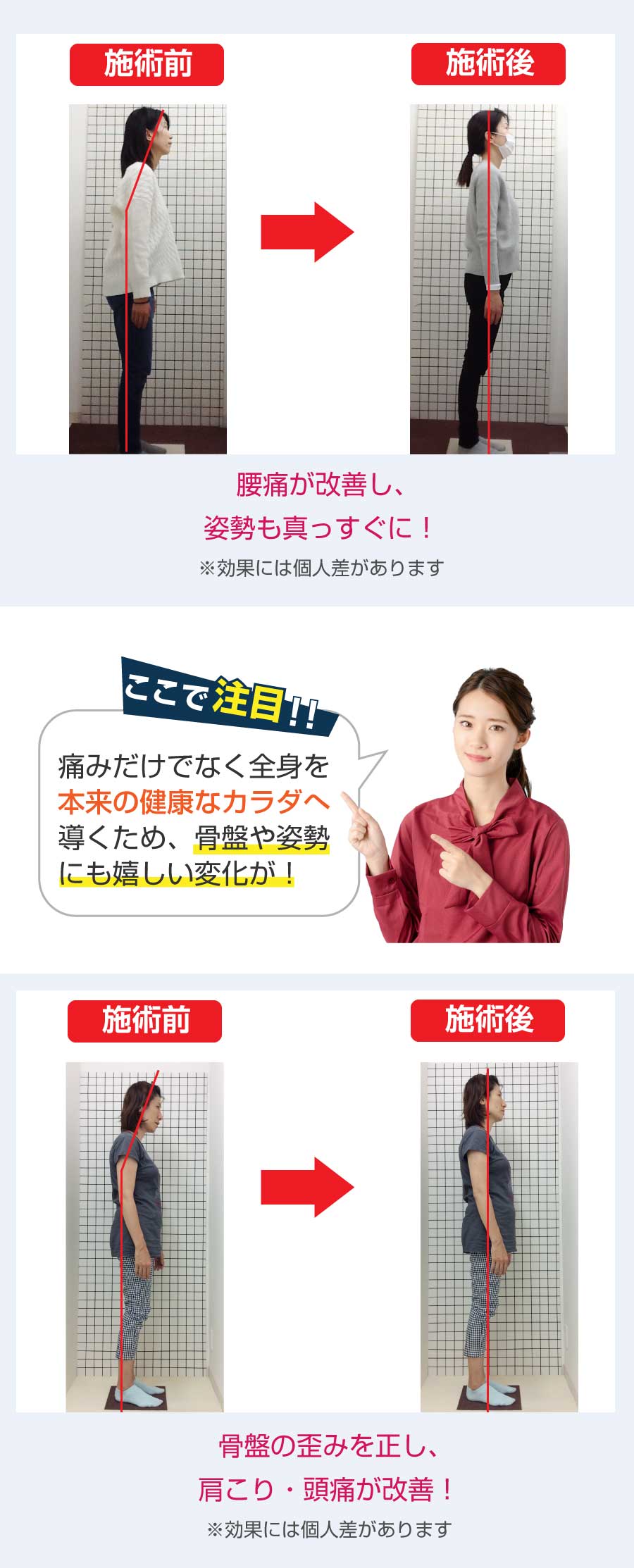 当院には色々な整体院や病院に行っても改善されなかった方が多く来院される中で、1回の施術で通院する、しないの判断をするのはとても難しいと思います。