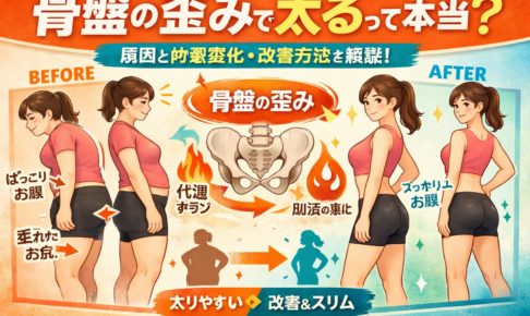 ① 骨盤の歪みで太るって本当?まず結論 「骨盤が歪むと太るって本当?」と気になりますよね。結論から言うと、骨盤の歪みだけで太るわけではないと言われています。ただし、体の使い方やバランスの崩れによって、太りやすい状態につな…