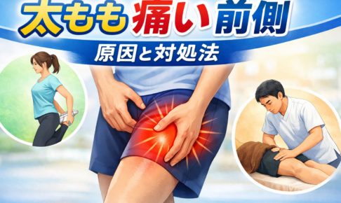 ① 太もも前側が痛いってどんな症状? 「太ももの前が痛い気がするんだけど、これって普通なの?」 こんなふうに感じて検索される方はとても多いようです。 実は太もも前側の痛みといっても、出る場所や痛み方、タイミングによって感…