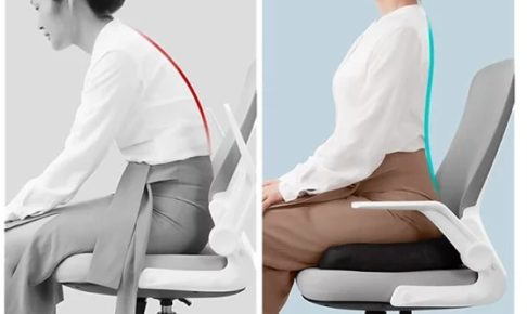 姿勢改善としては、背もたれにもたれず、頭が前に出ないよう意識するだけでも首の負担が減ります。
