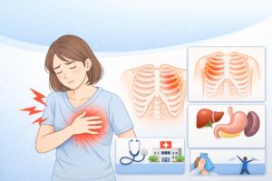 特徴としては、息を吸ったとき・体をひねったときに痛みが増す点が挙げられます。ただし、これも他の病気と見分けがつきにくいため、自己判断は避けることが勧められています(引用元:sakaguchi-seikotsuin.com)。