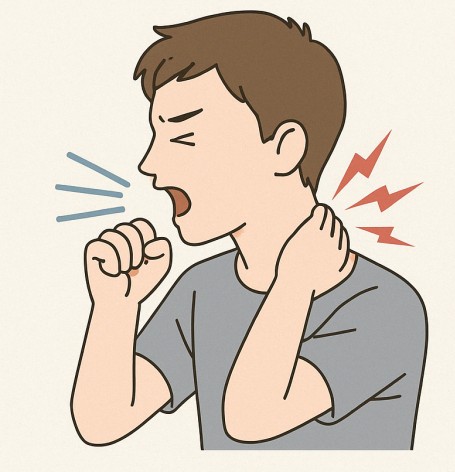咳をするとき、体の中では一瞬グッと力が入りますよね。「ゴホッ」とする瞬間、実は首や肩の筋肉も一緒に緊張していると言われています。特に首の後ろ側は、頭を安定させるために無意識で力が入りやすい部分です。