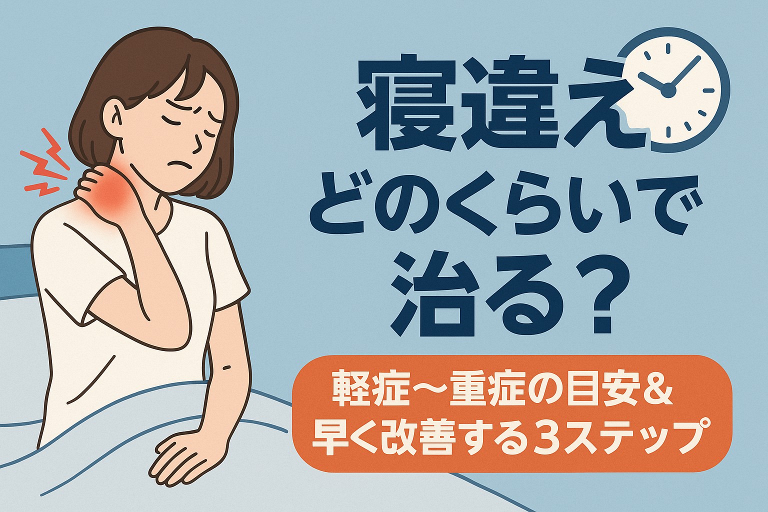 「寝違え どのくらいで治るか」は一概には言えず、**“痛みが取れるまでの時間”よりも、“生活に支障がなくなるまで”**を基準に考えると良いでしょう。