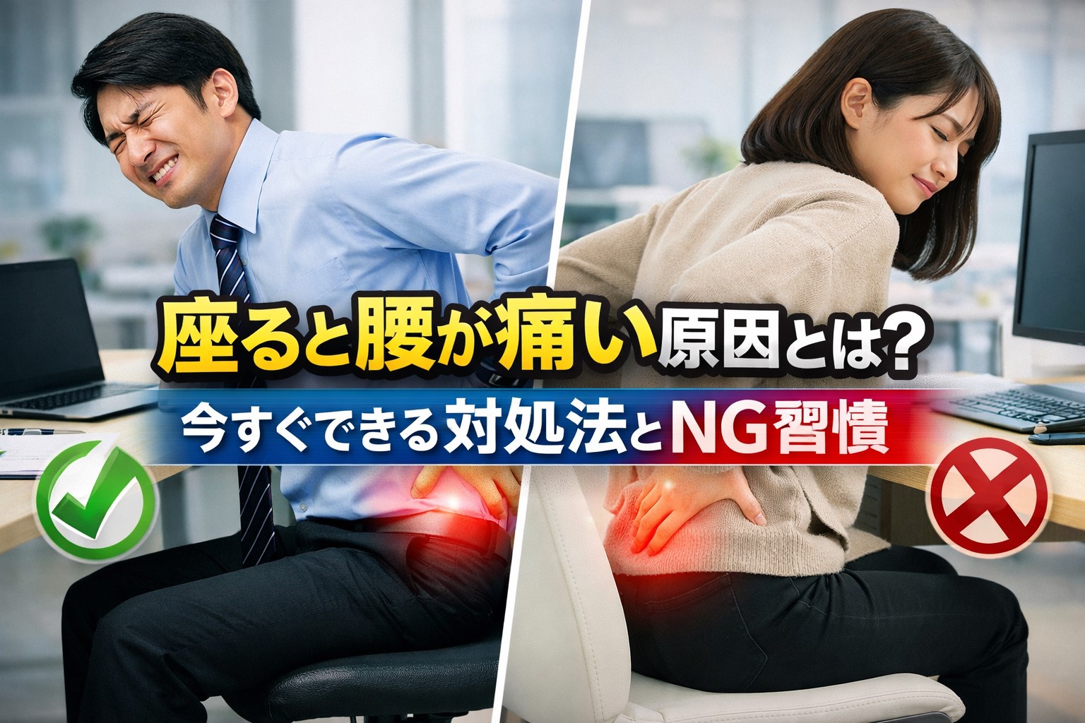 「なんで座るだけでこんなに腰がつらいの?」と疑問に感じますよね。