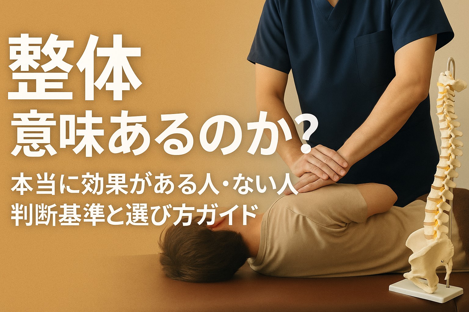 整体は「意味があるのか」と問われることが多いですが、結論としては「ケースによって効果を感じやすい人とそうでない人がいる」と言われています。肩こりや腰痛、姿勢の崩れなど慢性的な不調に対しては「体が軽くなった」「姿勢が楽になった」と感じる人が多い一方、骨折や腫瘍、急性の炎症には対応できないという限界も指摘されています(引用元:https://tadasu-seitai.jp/column/seitai-effect/)。また、効果を実感するには一定の通院期間やセルフケアの併用が前提になるとされており、「万能ではないが生活の質向上に役立つ場合がある」という整理が適切だと考えられます。