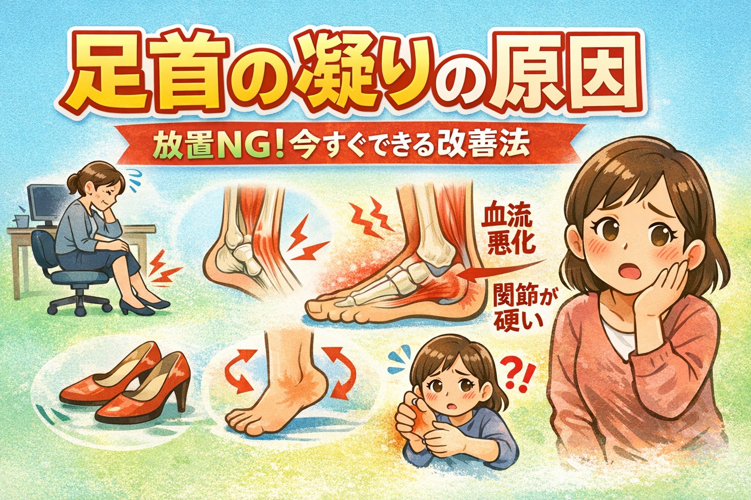 つまり、「動かさない」のも「同じ状態で使い続ける」のも、どちらも足首の凝りにつながる可能性があるということです。