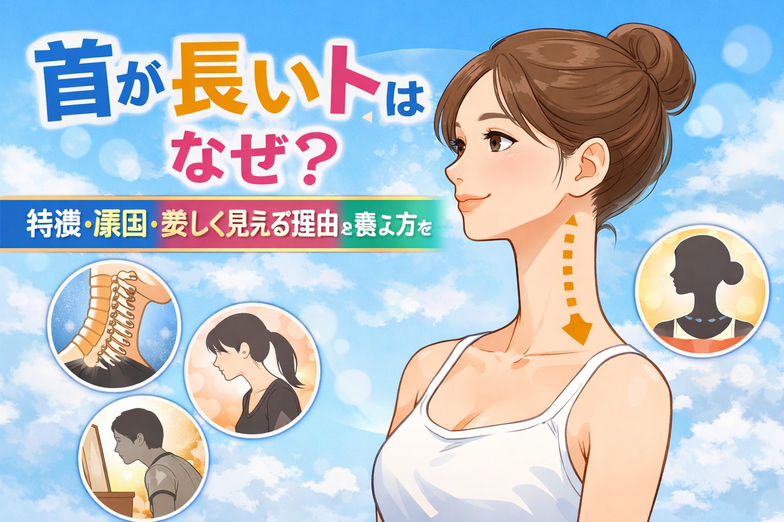 首の長さは、頸椎の配置や肩幅とのバランスによって見え方が変わることがあるようです。ただし、「骨の長さ=見た目の長さ」とは限らない点がポイントになります。