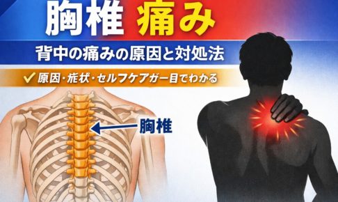1. 胸椎 痛みとは?背中中央の痛みが起きる仕組みを理解する 胸椎の位置と役割をやさしく整理 「胸椎って、どこにあるの?」と聞かれることが少なくありません。背骨は大きく3つに分かれていて、その真ん中あたりにあるのが胸椎だ…