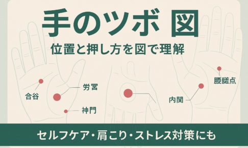 手のツボとは?図で見る意味と基本ポイント 手のツボは、古くから「体の縮図」とも呼ばれ、全身のバランスを整える要所として知られています。手のひらや手の甲を押すだけで、肩こりや目の疲れなど、さまざまな不調の緩和につながると言…